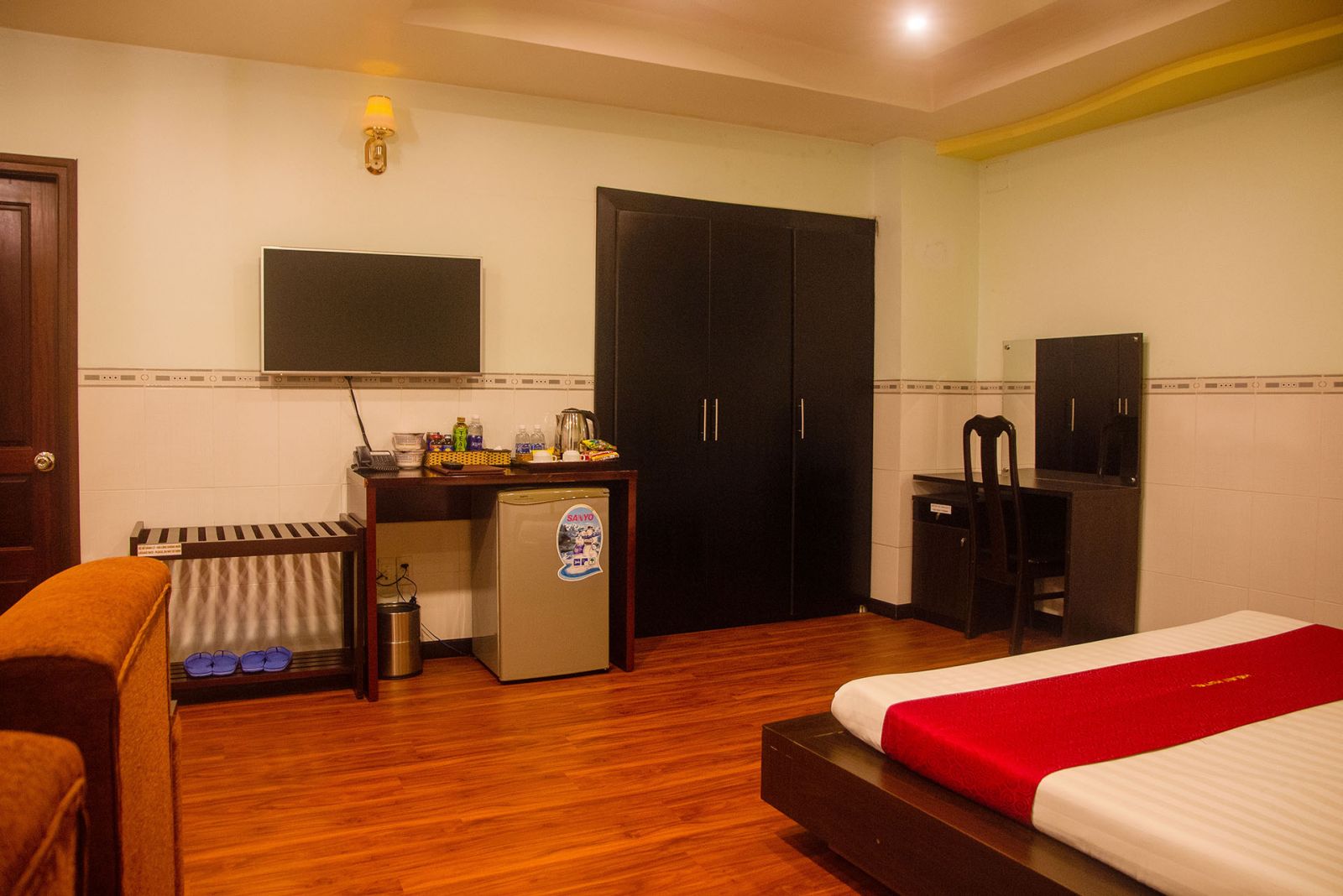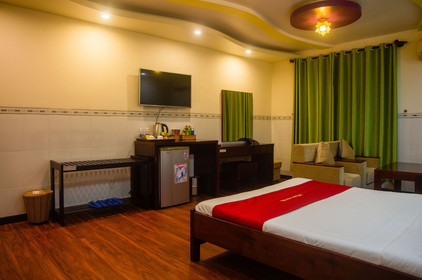 Phòng Deluxe hạng sang tại khách sạn Helen tiện nghi sang trọng, đầu tiên quý khách có thể thấy được là sàn phòng được lót gỗ rất đẹp và sang trọng.